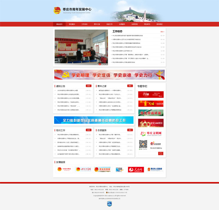 棗莊市青年發(fā)展中心的前身為棗莊市團(tuán)校,成立于1981年,是一所以培養(yǎng)共青團(tuán)干部和青年人才為主業(yè)的青年干部培訓(xùn)學(xué)校。坐落于棗莊市薛城區(qū)泰山路,占地20余畝,建筑面積12000平方米。 建校以來,在上級(jí)黨團(tuán)組織的關(guān)心和支持下,我們始終堅(jiān)持正確的辦學(xué)方向,以培養(yǎng)具有較高理論素養(yǎng)和工作能力的青年人才為己任,銳意創(chuàng)新、積極進(jìn)取,全面落實(shí)服務(wù)大局、服務(wù)社會(huì)、服務(wù)青少年的各項(xiàng)任務(wù);緊密結(jié)合廣大團(tuán)員青年的學(xué)習(xí)需求,不斷創(chuàng)新培訓(xùn)模式,充分發(fā)揮陣地作用,創(chuàng)造性地組織開展了形式新穎、內(nèi)容豐富的培訓(xùn)活動(dòng);采取長(zhǎng)短結(jié)合、內(nèi)外結(jié)合、與經(jīng)濟(jì)發(fā)達(dá)地區(qū)聯(lián)合等多種形式,不斷拓寬辦學(xué)領(lǐng)域,擴(kuò)大辦學(xué)規(guī)模,提高辦學(xué)質(zhì)量,先后舉辦了職業(yè)中專班、軍地人才班和成人學(xué)歷班;不斷豐富工作內(nèi)容,提升培訓(xùn)質(zhì)量,逐步形成了以團(tuán)干部培訓(xùn)為主,青少年研究、青少年素質(zhì)拓展、青年志愿者培訓(xùn)、成人學(xué)歷教育,“四位一體”的辦學(xué)格局。 2003年3月團(tuán)市委在市團(tuán)校設(shè)立“棗莊市青春創(chuàng)業(yè)指導(dǎo)中心”;2004年9月,棗莊電大市團(tuán)校分校成立;2005年6月團(tuán)市委在市團(tuán)校設(shè)立全市首批“學(xué)士后流動(dòng)站”;2010年初在北京大學(xué)的幫助與指導(dǎo)下,市團(tuán)校成立了青少年素質(zhì)拓展培訓(xùn)基地。同時(shí),市團(tuán)校積極響應(yīng)市委、市政府號(hào)召,圍繞中心、服務(wù)大局,充分發(fā)揮自身優(yōu)勢(shì),配合市、區(qū)農(nóng)業(yè)局、勞動(dòng)局,先后承擔(dān)了農(nóng)村勞動(dòng)力轉(zhuǎn)移、“陽光工程”培訓(xùn)班。 三十多年來,市團(tuán)校完成了25000余名團(tuán)干部和3000余名大中專學(xué)生的教學(xué)培訓(xùn)任務(wù),向蘇州、上海、煙臺(tái)等經(jīng)濟(jì)發(fā)達(dá)地區(qū)輸送高素質(zhì)的青年勞務(wù)人員近1000人,累計(jì)培訓(xùn)各類青年農(nóng)民1500人次,開設(shè)中央電大“開放教育”本、?茖I(yè)20多個(gè),學(xué)員近1000人,開展素質(zhì)拓展培訓(xùn)5000余人,成功舉辦兩屆全市青年攀巖比賽,受到了社會(huì)各界的一致好評(píng)。 2017年3月,棗莊市“青年之家”在市團(tuán)校建成投入運(yùn)行,設(shè)置法律維權(quán)、心理咨詢、婚戀交友、志愿服務(wù)、傳統(tǒng)文化教育和素質(zhì)拓展六大模塊,是棗莊共青團(tuán)面向社會(huì)、面向青少年的多功能、復(fù)合型、綜合性服務(wù)平臺(tái),是團(tuán)組織使用管理的公益性、綜合性服務(wù)場(chǎng)所。 2017年8月,棗莊市團(tuán)校更名為棗莊市青年發(fā)展中心。展望未來,我們信心百倍,全體教職工將繼續(xù)圍繞黨政中心工作大局,以更加奮發(fā)有為的精神狀態(tài),開拓進(jìn)取、奮力拼搏,立身自身實(shí)際,發(fā)揚(yáng)優(yōu)良傳統(tǒng),在新的征程上邁出新步伐,再上工作新臺(tái)階,再創(chuàng)事業(yè)新輝煌。