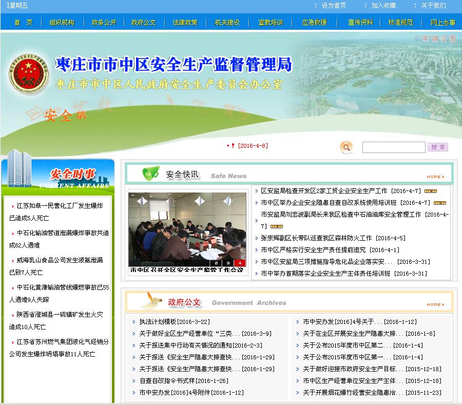 市中區(qū)安全生產(chǎn)監(jiān)督管理局成立于2001年9月,是綜合管理全區(qū)安全生產(chǎn)工作的行政執(zhí)法機(jī)構(gòu),是區(qū)政府監(jiān)督管理安全生產(chǎn)工作的職能部門(mén),也是區(qū)安全生產(chǎn)委員會(huì)日常辦事機(jī)構(gòu)。為適應(yīng)安全生產(chǎn)工作需要,加強(qiáng)對(duì)安全生產(chǎn)的監(jiān)督管理,預(yù)防和減少各類(lèi)安全生產(chǎn)事故,建立健全統(tǒng)一、高效、職責(zé)明確的安全生產(chǎn)監(jiān)督管理機(jī)構(gòu),制定本工作職責(zé)。 |